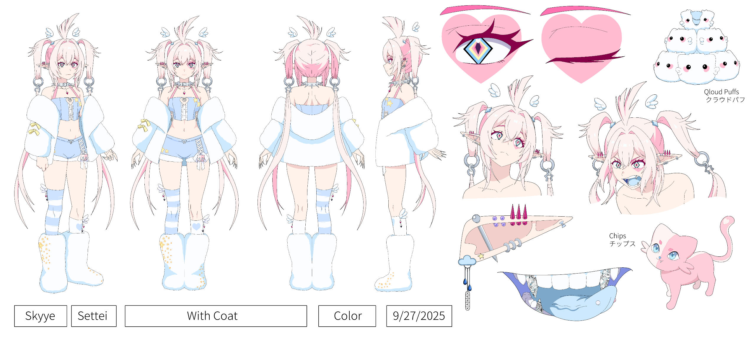 I may use commissioned artwork of Skyye for merchandise only when commercial rights have been agreed upon in advance and the artist has been properly compensated.No ImpersonationSkyye may not be used by others as a VTuber persona, mascot, avatar, or brand identity. This includes roleplay accounts, content creation, or the use of her likeness to represent any entity other than me.AI & Dataset RestrictionSkyye’s design and all related artwork may not be used in any form of AI training, dataset collection, or generative models. This includes uploading to AI art generators, feeding into machine learning datasets, or allowing any platform or tool to derive content using her likeness.⚠️ While I acknowledge that some platforms may store or cache images, this clause explicitly states that I do not consent to Skyye’s design or artwork being used in AI systems under any circumstances.Model & Rigging ClauseSkyye’s Live2D/3D model, facial expressions, toggles, and outfit designs are protected under these same terms. These assets may not be copied, altered, traced, or used to create derivative characters or models.If you have questions about any of the above terms or would like to propose a commercial agreement, please contact me directly. I’m always open to respectful collaboration and clear communication.