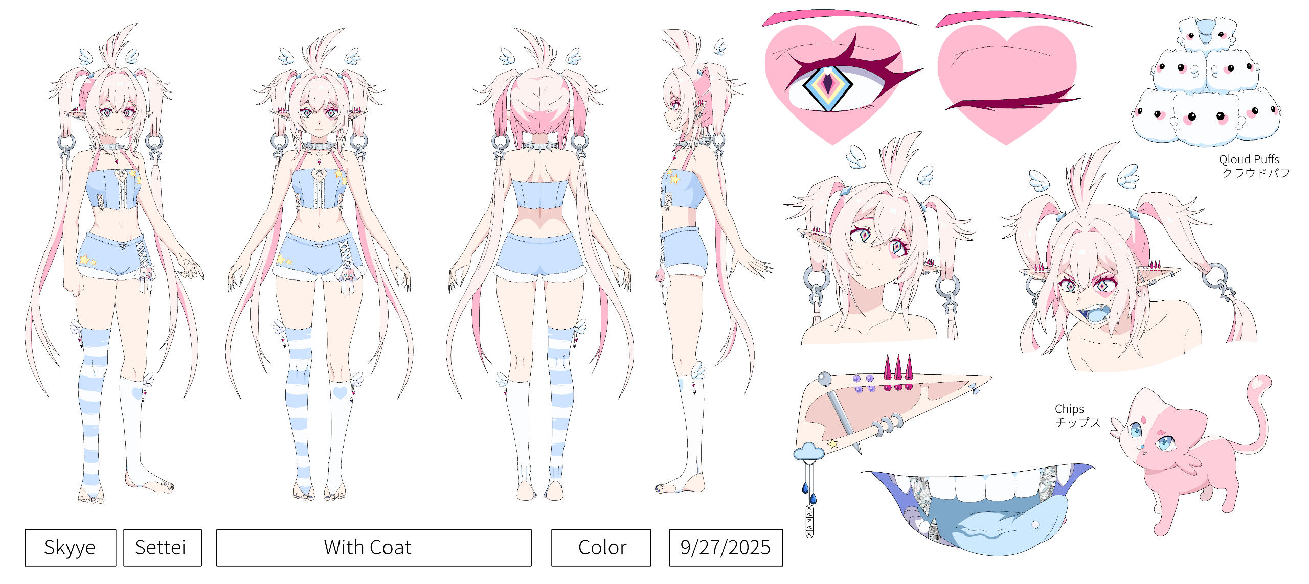 I may use commissioned artwork of Skyye for merchandise only when commercial rights have been agreed upon in advance and the artist has been properly compensated.No ImpersonationSkyye may not be used by others as a VTuber persona, mascot, avatar, or brand identity. This includes roleplay accounts, content creation, or the use of her likeness to represent any entity other than me.AI & Dataset RestrictionSkyye’s design and all related artwork may not be used in any form of AI training, dataset collection, or generative models. This includes uploading to AI art generators, feeding into machine learning datasets, or allowing any platform or tool to derive content using her likeness.⚠️ While I acknowledge that some platforms may store or cache images, this clause explicitly states that I do not consent to Skyye’s design or artwork being used in AI systems under any circumstances.Model & Rigging ClauseSkyye’s Live2D/3D model, facial expressions, toggles, and outfit designs are protected under these same terms. These assets may not be copied, altered, traced, or used to create derivative characters or models.If you have questions about any of the above terms or would like to propose a commercial agreement, please contact me directly. I’m always open to respectful collaboration and clear communication.
